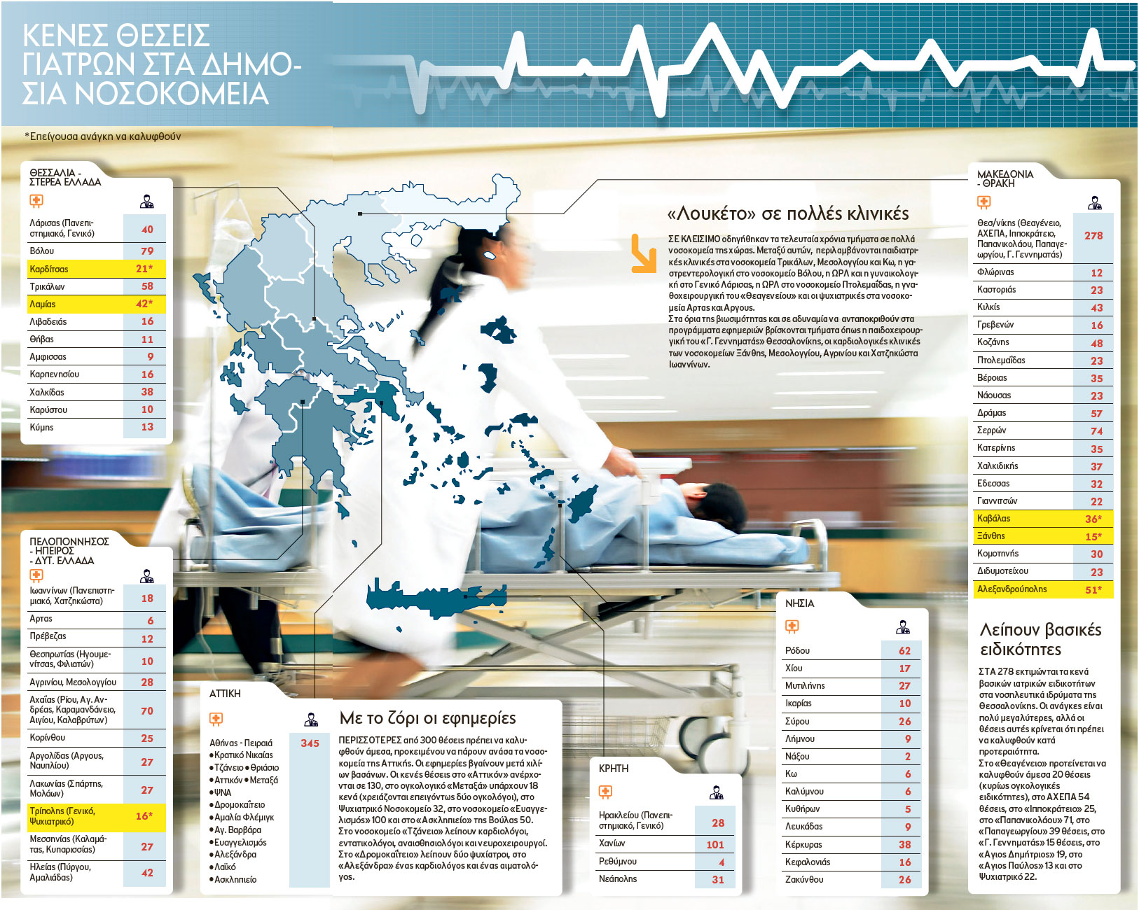 Σχολιάζοντας τα κενά που υπάρχουν σήμερα στα δημόσια νοσοκομεία, η ομάδα στελεχών κάνει λόγο για «εικόνα αθλιότητας». Δραματική είναι η κατάσταση ειδικά των νοσηλευτικών ιδρυμάτων που βρίσκονται στις δυσπρόσιτες περιοχές, στα νησιά και στην περιφέρεια της χώρας. Οι ελλείψεις είναι πολύ σοβαρές σε ιατρικό, νοσηλευτικό, εργαστηριακό προσωπικό, φαρμακοποιούς, βιοχημικούς και λοιπό προσωπικό.