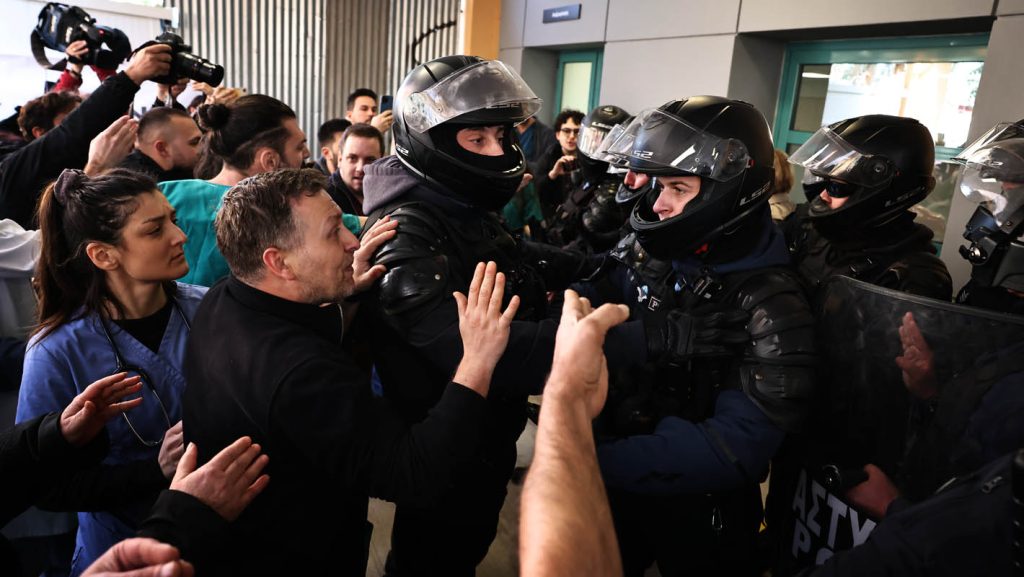 Προκλητικά –όπως το συνηθίζει- ο υπουργός εμπορίας της υγείας, απευθύνθηκε με αναίδεια στους συγκεντρωμένους εργαζόμενους και διέταξε τα όργανα της τάξης να σπρώξουν βίαια τον κόσμο με ασπίδες και ρόπαλα, προκειμένου να εισέλθει στο νοσοκομείο.