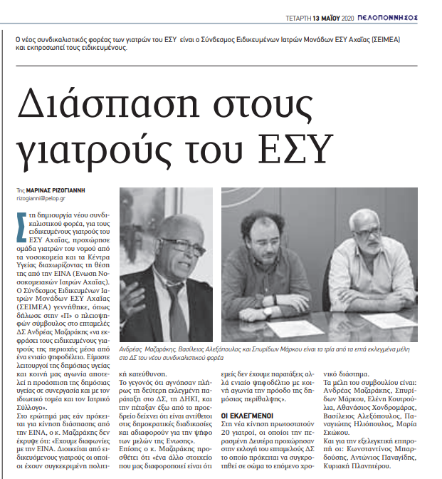 Από πότε η «διαφωνία» με τη δημοκρατικά διαμορφωμένη πλειοψηφία και το εκλεγμένο προεδρείο ενός σωματείου με 900 μέλη και 600 ψηφίσαντες οδηγεί στην ανάγκη ίδρυσης άλλου; Πότε ακριβώς η Ε.Ι.Ν.Α δεν υπερασπίστηκε τα συμφέροντα των ειδικευμένων γιατρών στην ιστορική της πορεία έως και πρόσφατα και ξαφνικά προέκυψε η ανάγκη για δεύτερο πρωτοβάθμιο σωματείο;
