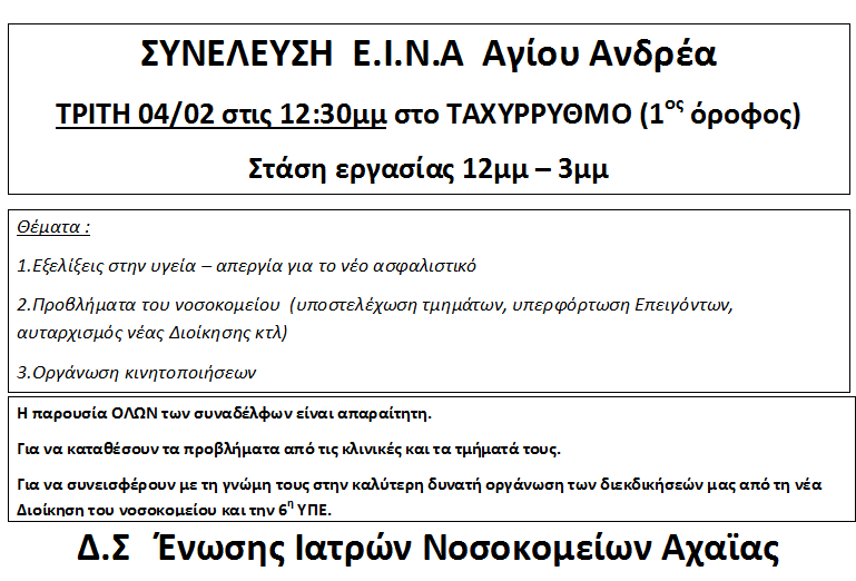 Δ.Σ Ένωσης Ιατρών Νοσοκομείων Αχαϊας
